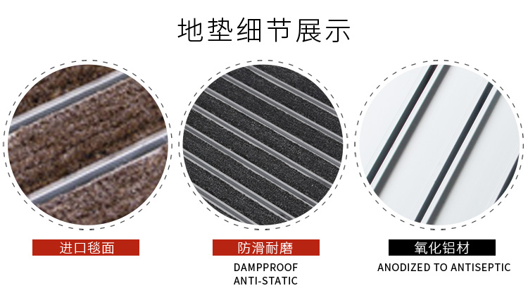 铝合金地垫主要功能为除尘、防滑、除尘、刮砂、吸湿、美观等。