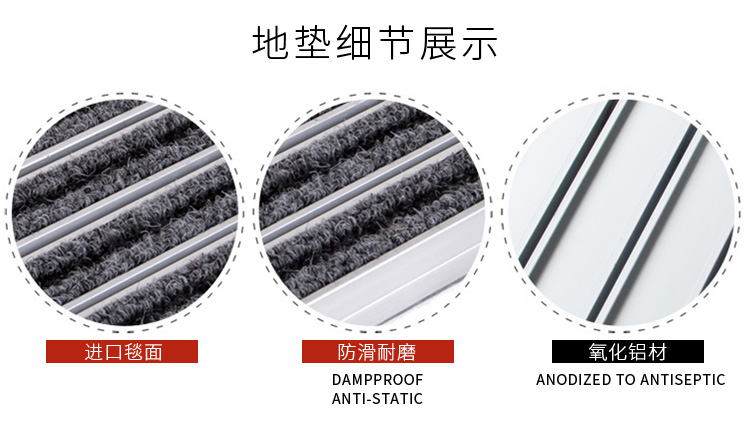 铝合金地垫主要功能为除尘、防滑、除尘、刮砂、吸湿、美观等。