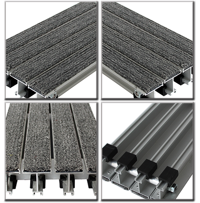 铝合金地垫主要功能为除尘、防滑、除尘、刮砂、吸湿、美观等。