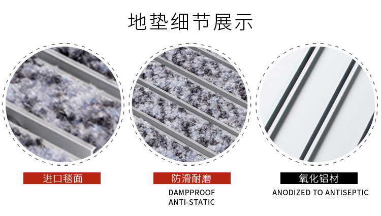 铝合金地垫主要功能为除尘、防滑、除尘、刮砂、吸湿、美观等。