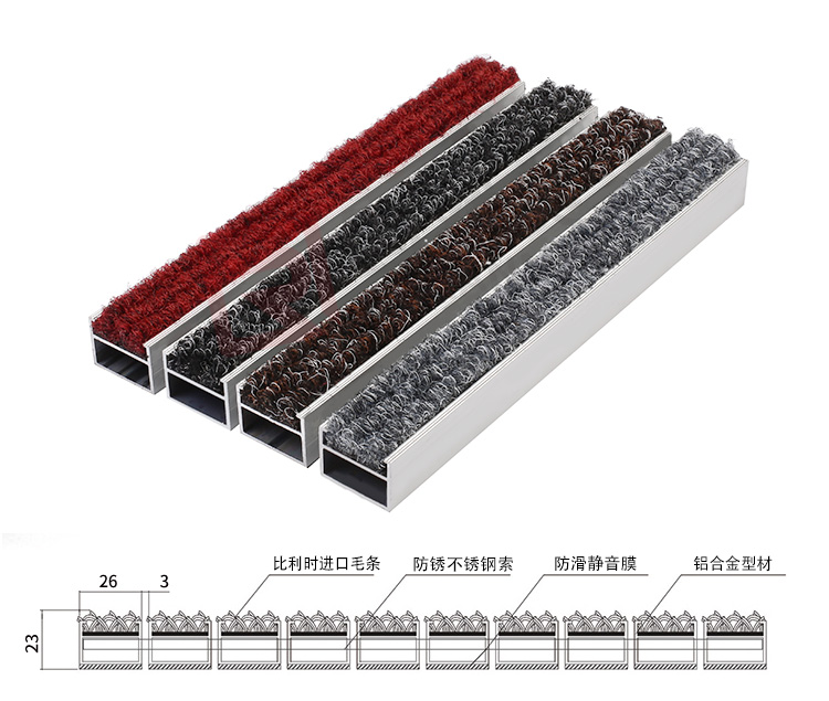 铝合金地垫主要功能为除尘、防滑、除尘、刮砂、吸湿、美观等。
