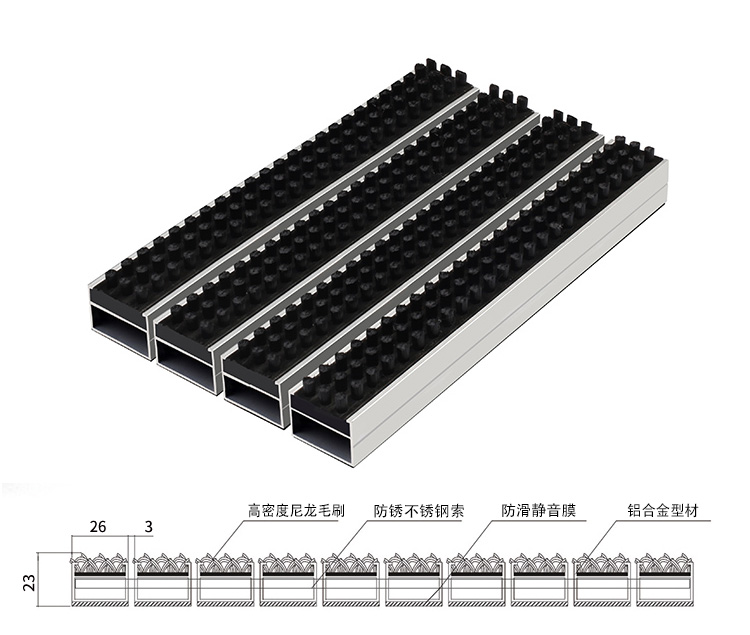 铝合金地垫主要功能为除尘、防滑、除尘、刮砂、吸湿、美观等。