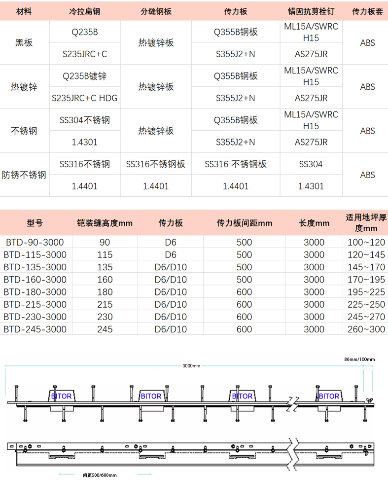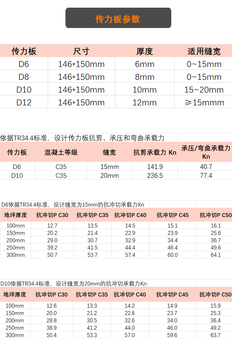 传力板:厚度有6mm, 8mm, 10mm, 12mm,材质Q355。黑板、镀锌、不锈钢等不同材质供客户选择。