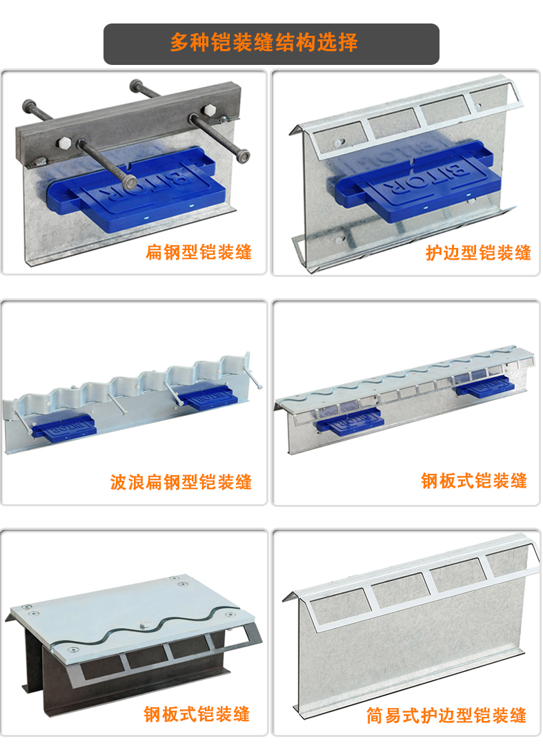 此款扁钢型铠装缝由两根扁钢、分仓缝钢板、传力板等组成。