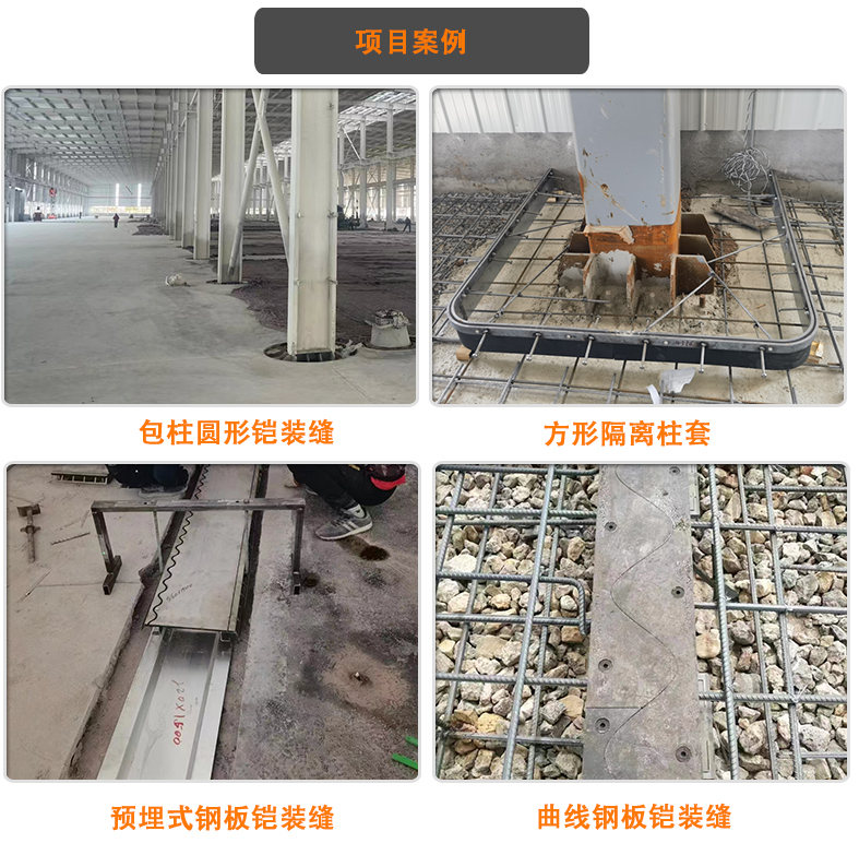 我司铠装缝设计是由棱角保护扁钢或钢板、地坪分仓缝钢板、传力板、传力板伸缩鞘套、易断塑料螺栓、锚固栓钉等组成。适用于各种类型需求的混凝土地面浇筑,甚至大型承重工业地坪也适用。