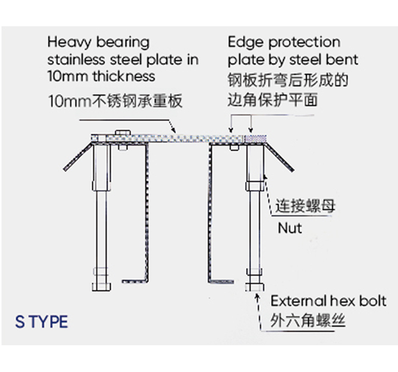 传力板:厚度有6mm, 8mm, 10mm, 12mm,材质Q355。黑板、镀锌、不锈钢等不同材质供客户选择。