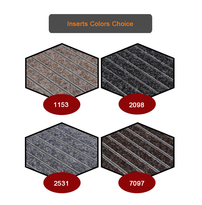 2.Insert: Beaulieu Lombok and Jave Gel from Belgium, Milliken from USA, Calypso and Centaur and Traffic GP from VEBE Netherland, Nouto and A.T. from German, Ribbed from Taiwan, and so on. Most of the insert has passed the fire proof certificates from our suppliers. The material is nylon 66 and polypropylene filament yarn with loop-pile instructure. Rubber and brush also can be used.