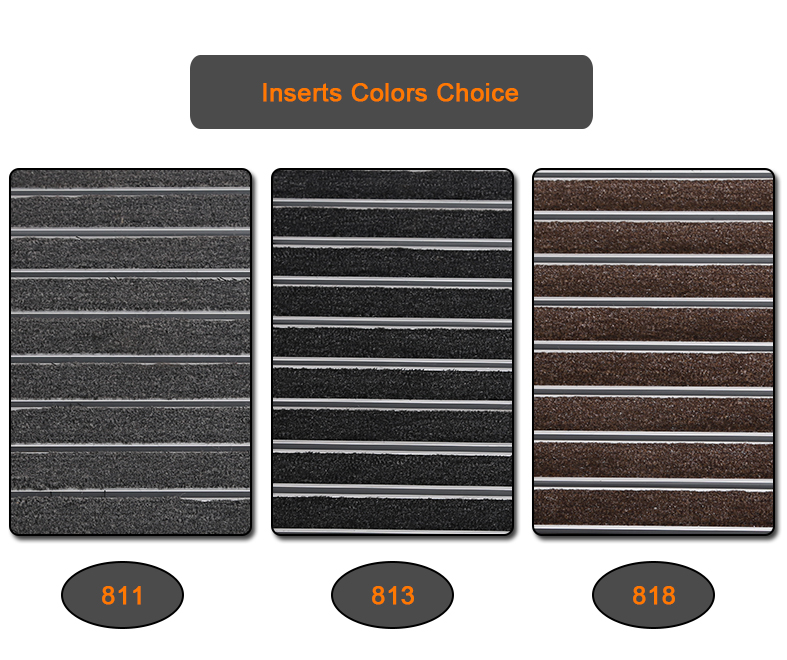 2.Insert: Beaulieu Lombok and Jave Gel from Belgium, Milliken from USA, Calypso and Centaur and Traffic GP from VEBE Netherland, Nouto and A.T. from German, Ribbed from Taiwan, and so on. Most of the insert has passed the fire proof certificates from our suppliers. The material is nylon 66 and polypropylene filament yarn with loop-pile instructure. Rubber and brush also can be used.