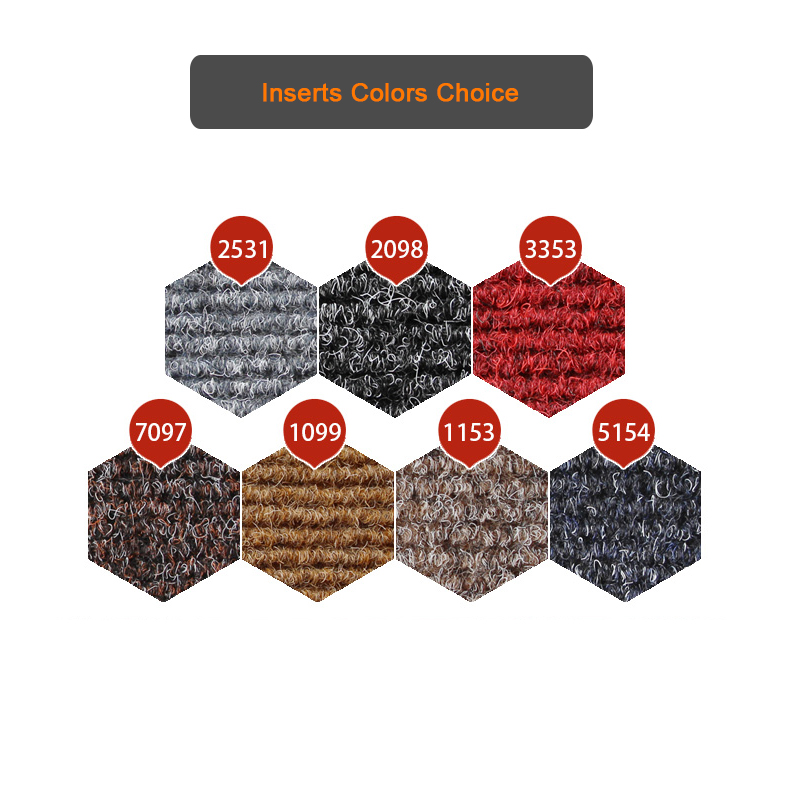 2.Insert: Beaulieu Lombok and Jave Gel from Belgium, Milliken from USA, Calypso and Centaur and Traffic GP from VEBE Netherland, Nouto and A.T. from German, Ribbed from Taiwan, and so on. Most of the insert has passed the fire proof certificates from our suppliers. The material is nylon 66 and polypropylene filament yarn with loop-pile instructure. Rubber and brush also can be used.