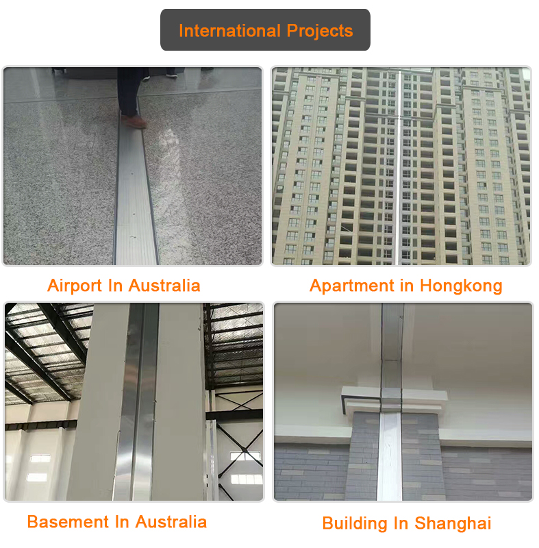 Types (installation positions): Flooring expansion joint, interior and exterior wall expansion joint, ceiling expansion joint, roof expansion joint