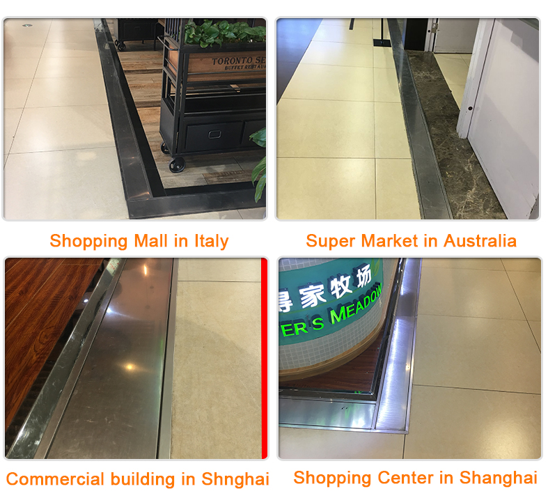 Our expansion joint system is widely installed in all kind of projects, especially in airports, malls, hospitals, schools, parkings, industrial buildings, factories …given their features and dimensions. This system generally consist of aluminum profiles with a rubber insert or are systems entirely made of metal. The function is covering the expansion joint gap to allow the free movement of the blocks without causing damage in the concrete or the tiling.