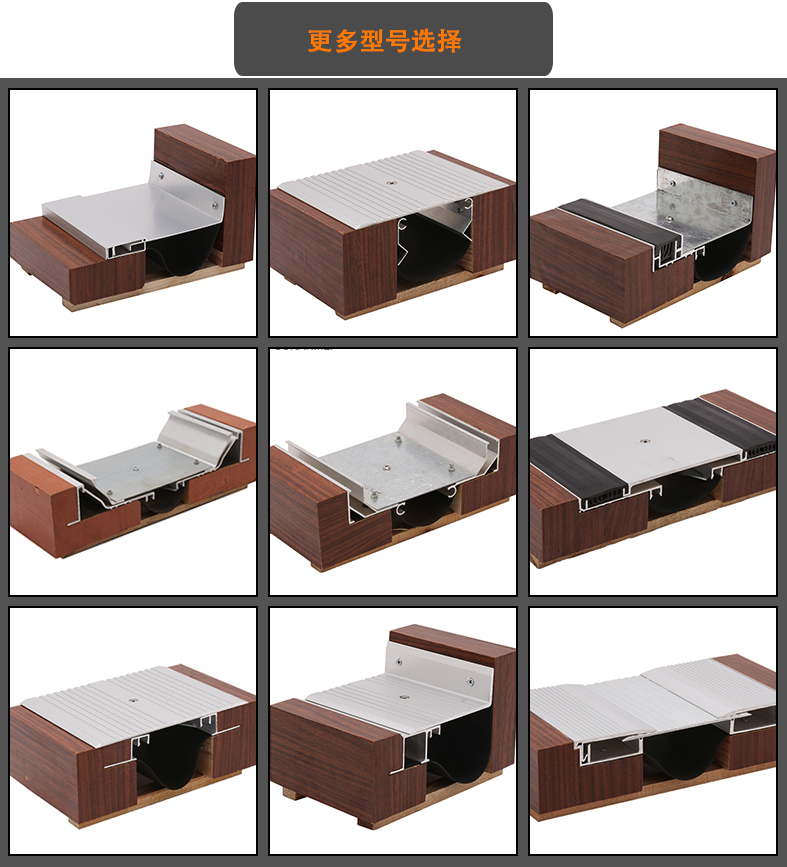我司生产的建筑变形缝装置被广泛运用于现今各个项目中,如机场、商场、医院、学校、停车场等各类大型工业建筑。该装置由铝合金跟橡胶条组成,或者纯金属组成。其功能是盖住建筑体中的缝,并吸收各建筑板块间存在的运动余量,以此来解决建筑由于地面沉降、碰撞所引起的损坏。